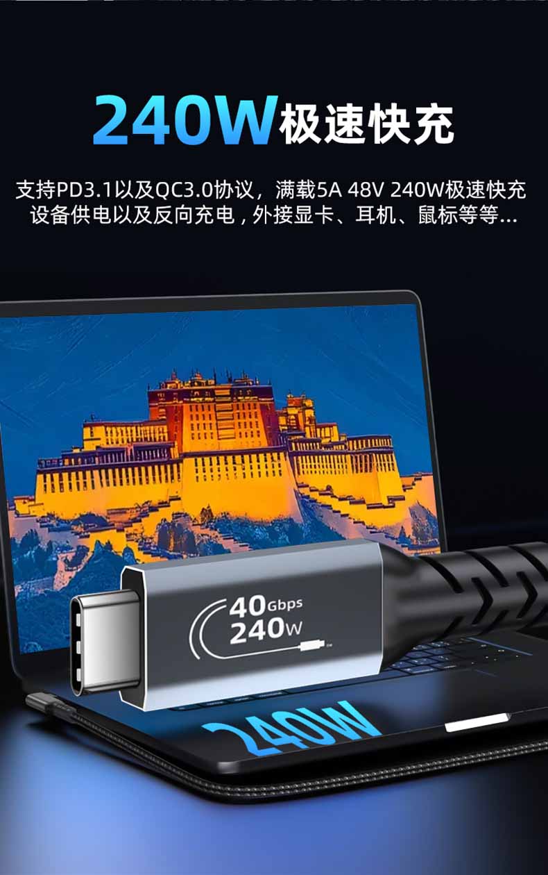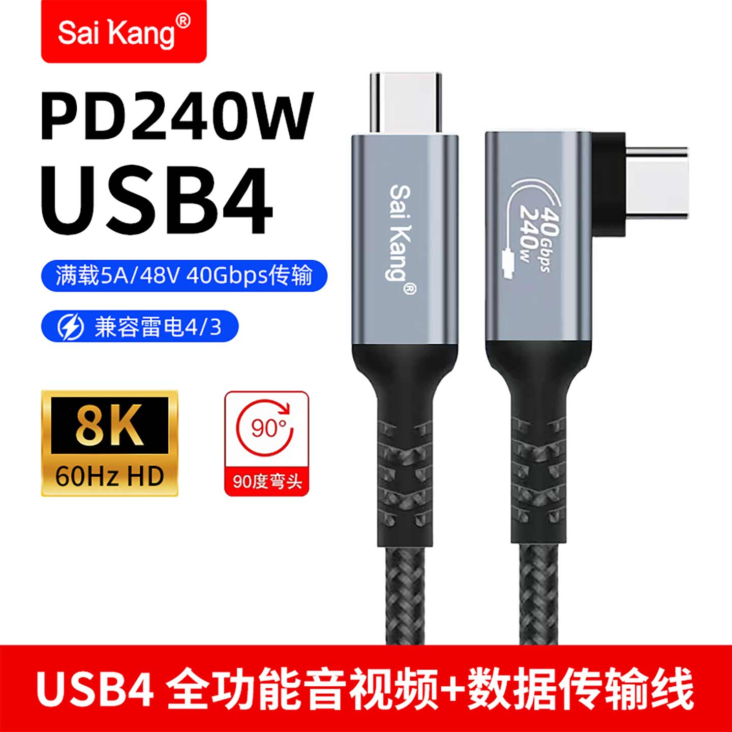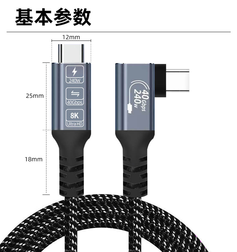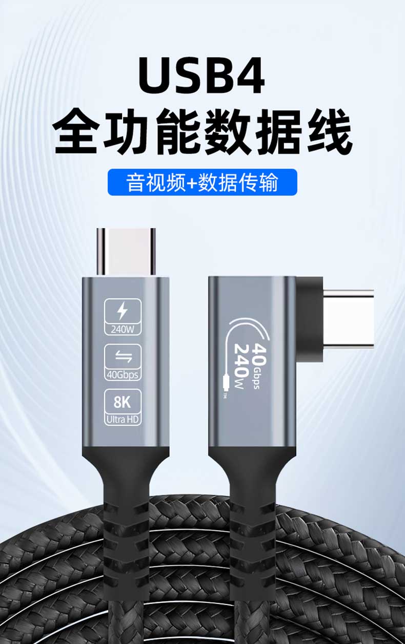 USB4 全功能公对公侧弯数据线