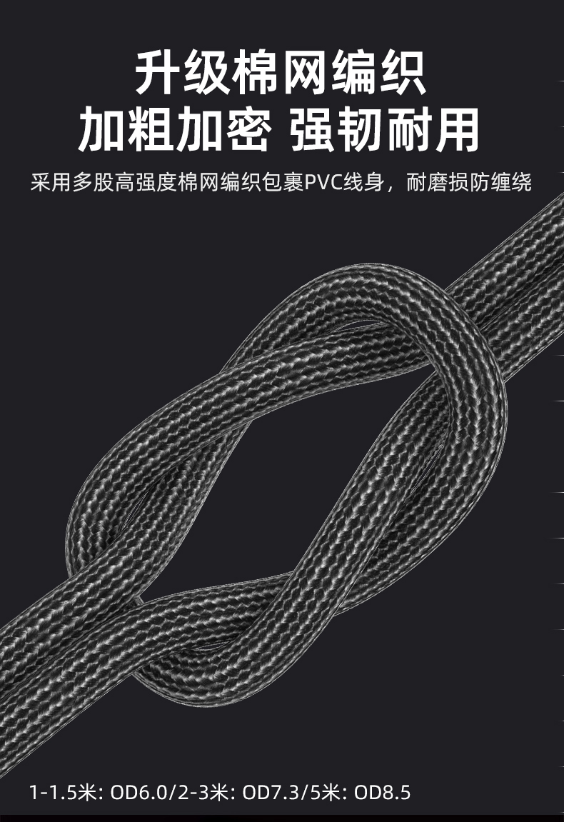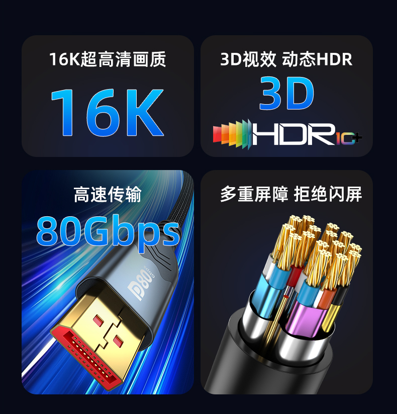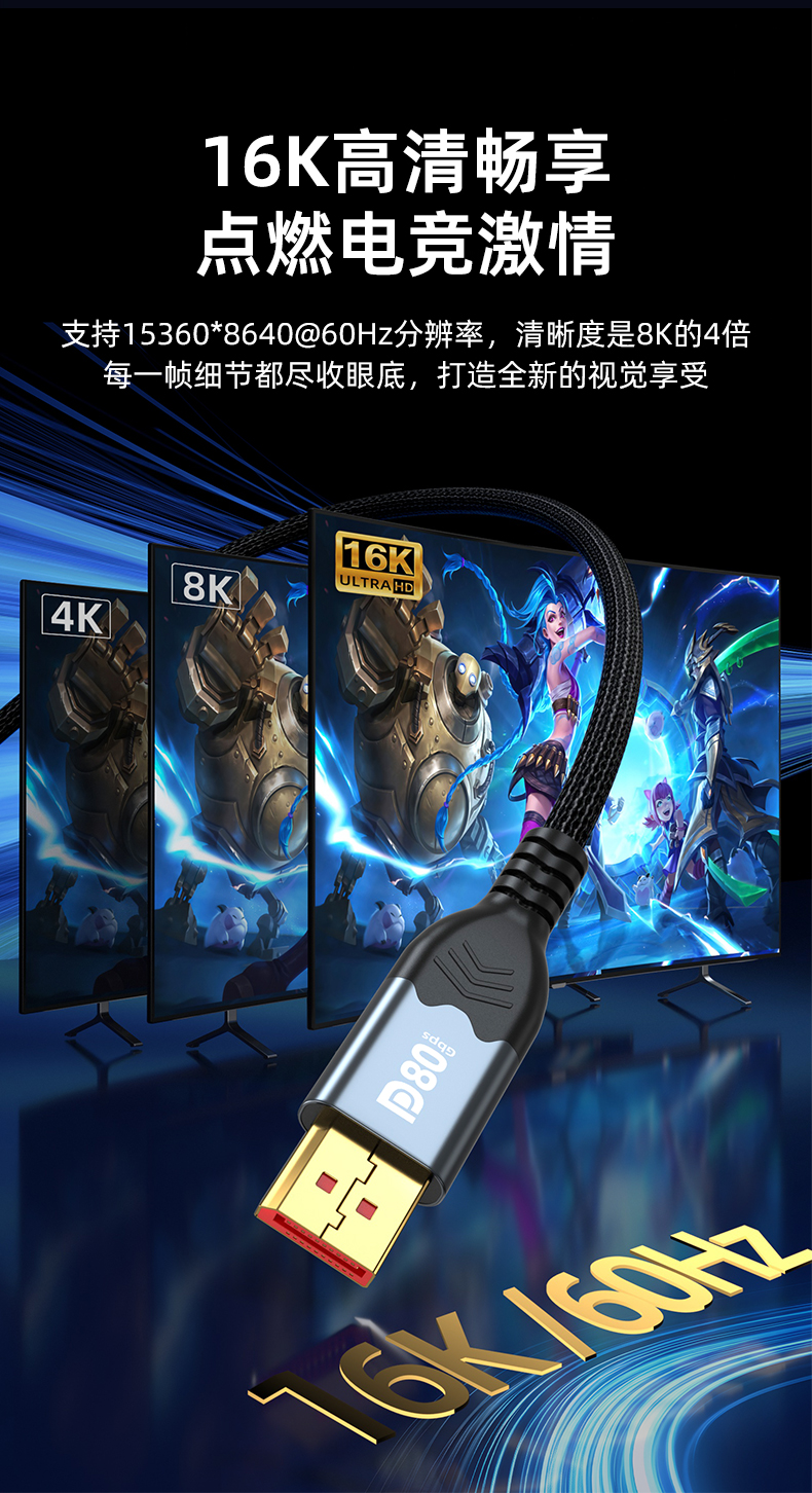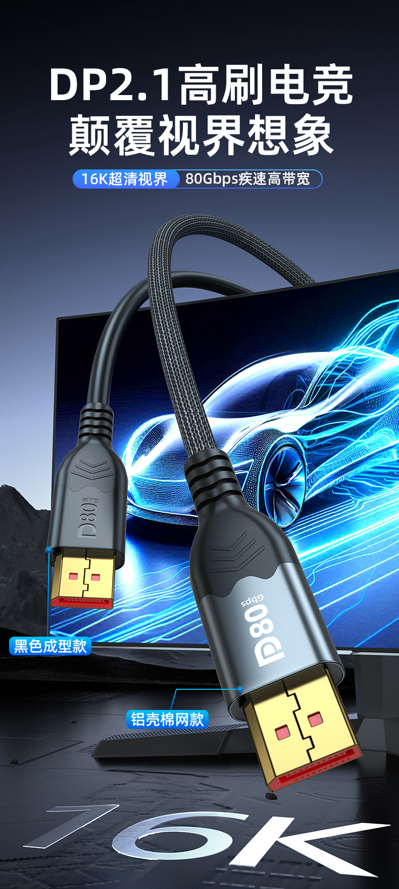 DP2.1 16K 黑色棉网电竞线(铝壳款)