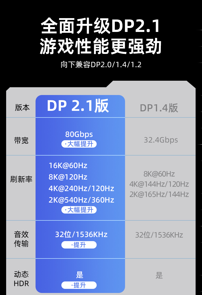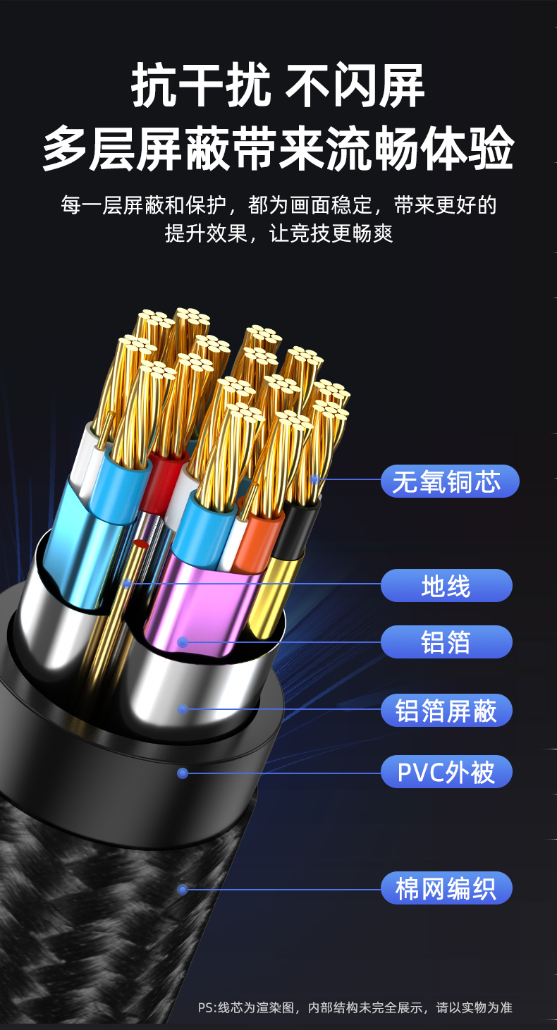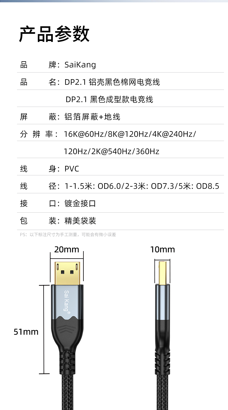 DP2.1 16K 黑色棉网电竞线(铝壳款)