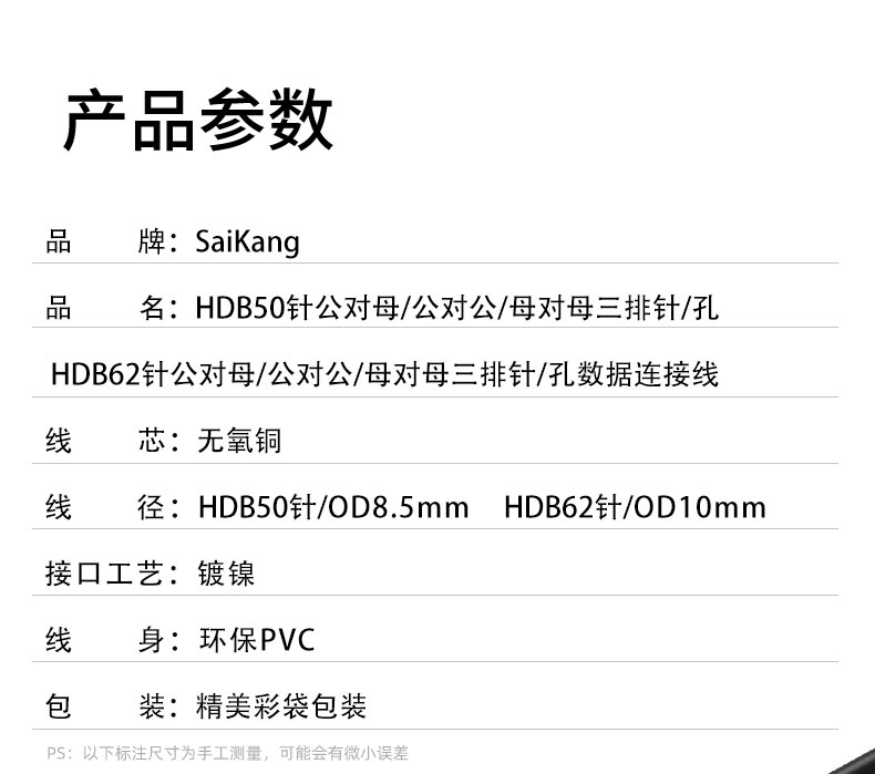 HDB50公对母数据连接线(三排针/孔)SK-DB379