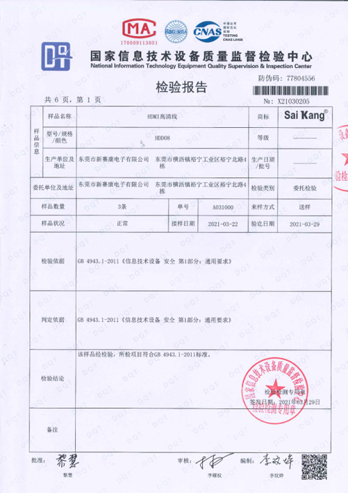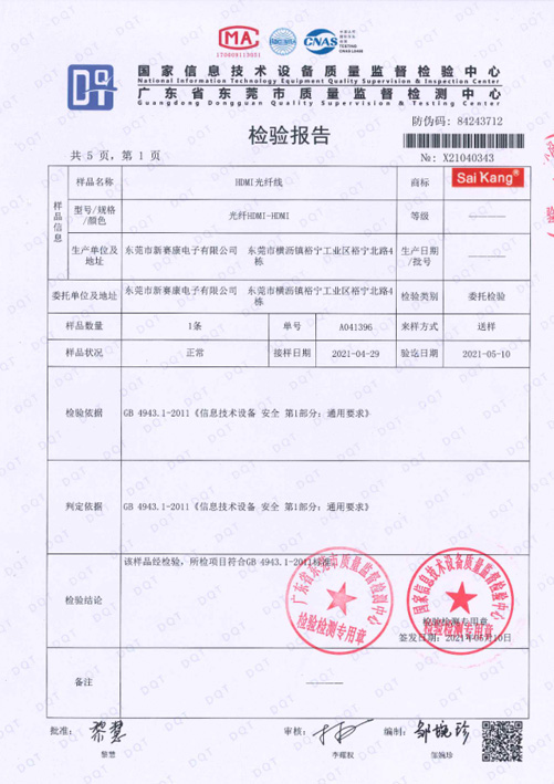 光纤HDMI检测报告